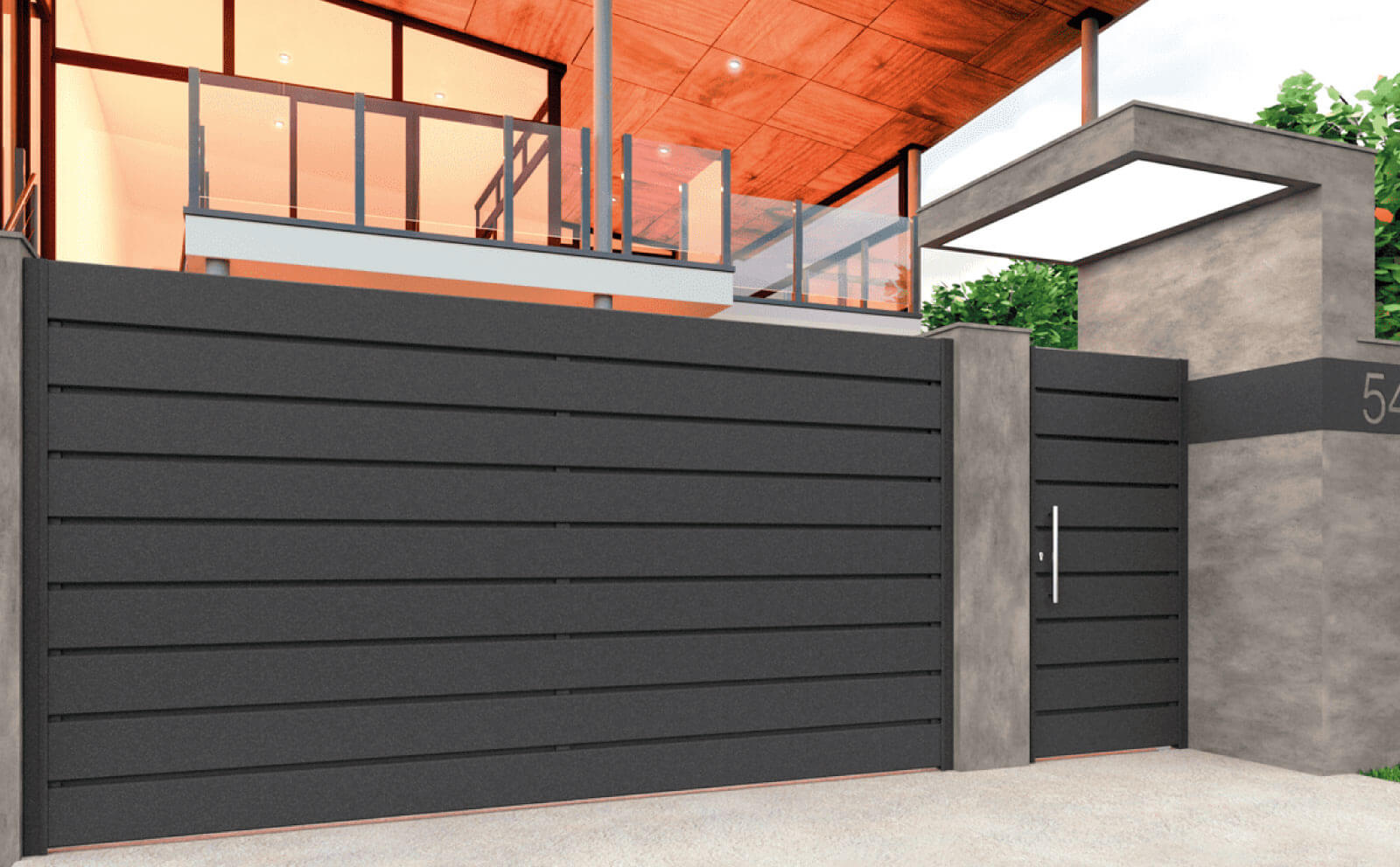 Compuesta por tablones horizontales que cobran todo el protagonismo de la misma, a la misma vez que provoca la circulación del aire entre tablones para evitar el efecto vela y darle así, una gran robustez.